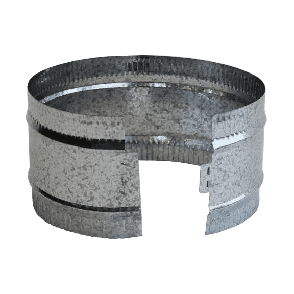 10″ galvanized round duct coupling. Connects two pieces of flex duct together or joins flex duct to a metal collar. Standard slip-fit connection.