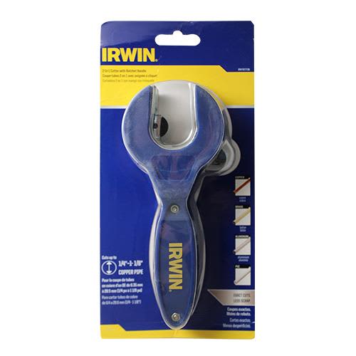 Irwin IRHT81736 Ratcheting Tubing Cutter, designed for copper, brass, PVC, and aluminum tubing. Cuts tubing sizes from 1/4″ to 1-1/8″ with a durable cutting wheel for precise cuts.